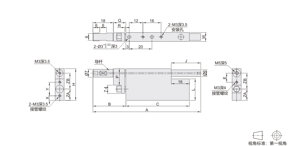 通心导杆结构 ,导杆前端和后端都有安装螺纹 ,可直接安装吸盘 、柔性夹爪 、气管接头等;