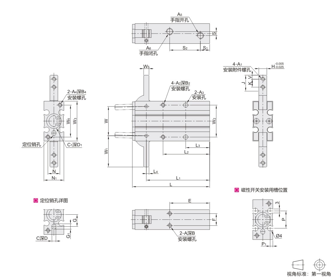 气爪 支点开闭型 二爪 凸轮式180° 带磁石 双作用