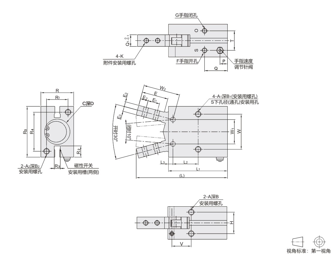 | 缸径 | L1 | L2 | L3 | R | R1 | R2 | R3 | R4 | R5 | T | P | Q | Q1 | G | F | K | S | ||||||||||||||||||||||||||||||||||