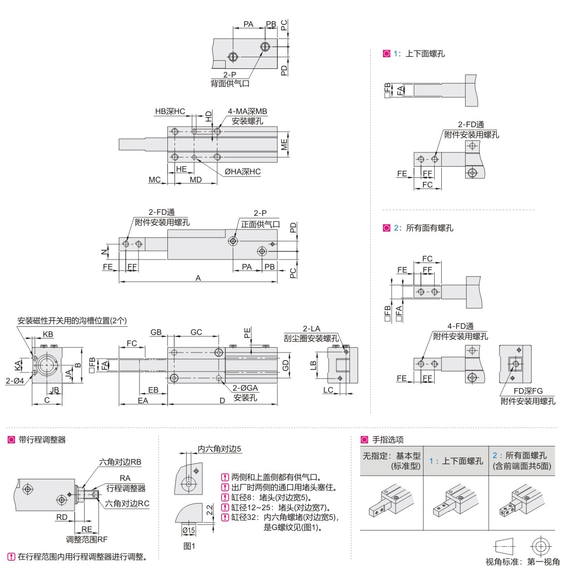 | 缸径 | 行程 | PB | PC | PD | PE | RA | RB | RC | RD | RE | RF |