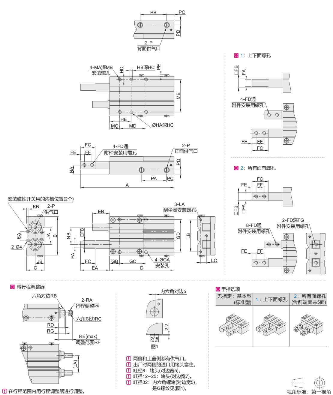 | 缸径 | 行程 | PB | PC | PD | PE | RA | RB | RC | RD | RE | RF | RG |