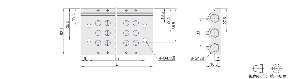 | WMD01 | VUVGM5系列 | 德标电磁阀系列用 | A6061-T6 | 阳极氧化 |