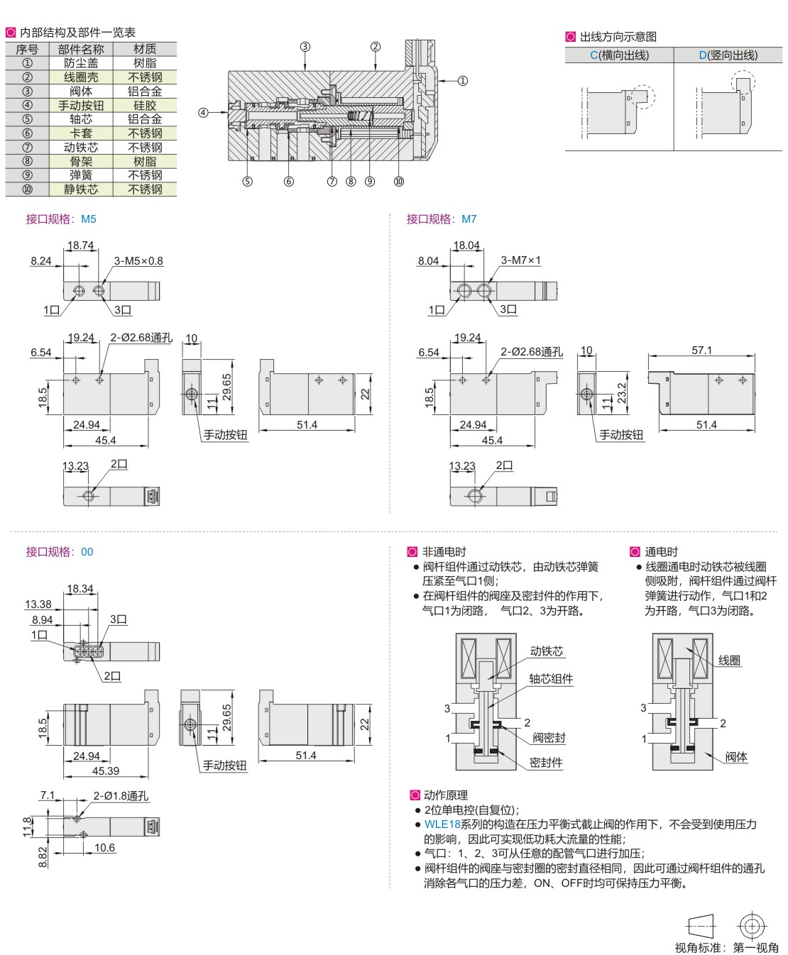 | WLE18 | M5(接口规格M5×0.8) 00(三口朝一侧,底接式) |