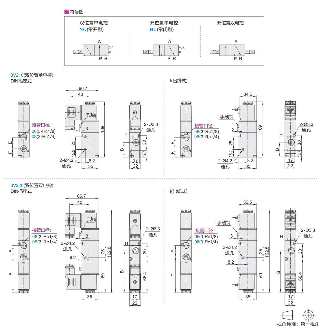 | 型号 | 3V210-06 | 3V220-06 | 3V210-08 | 3V220-08 |