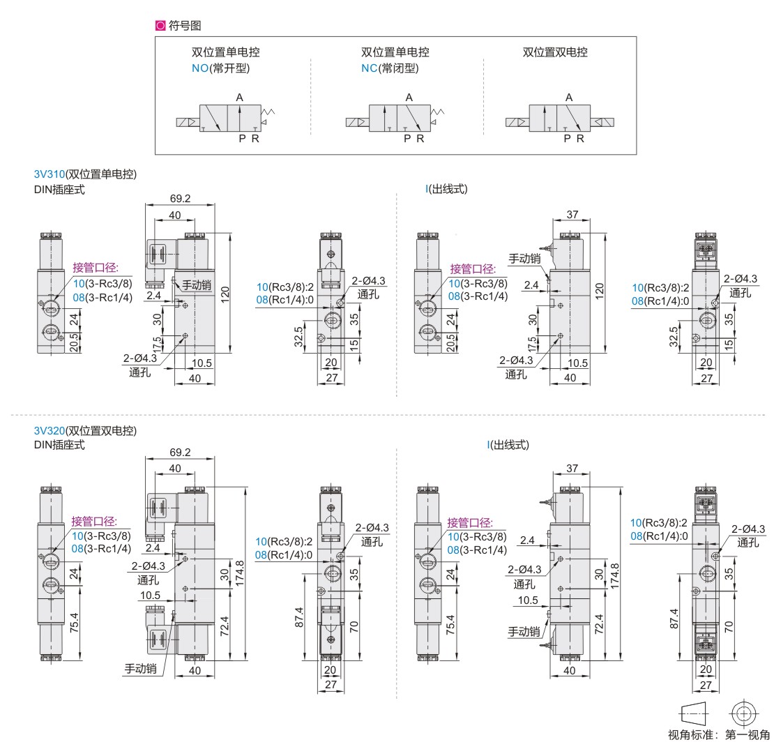 | 型号 | 3V310-08 | 3V320-08 | 3V310-10 | 3V320-10 | |||||||||||||||||||||||||||