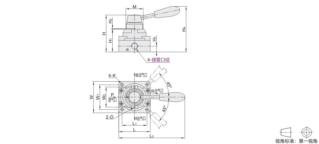 | 系列 | 接管口径 | D | H | H1 | H2 | H3 | H4 | K | L | L1 | L2 | M | W | W1 | W2 |