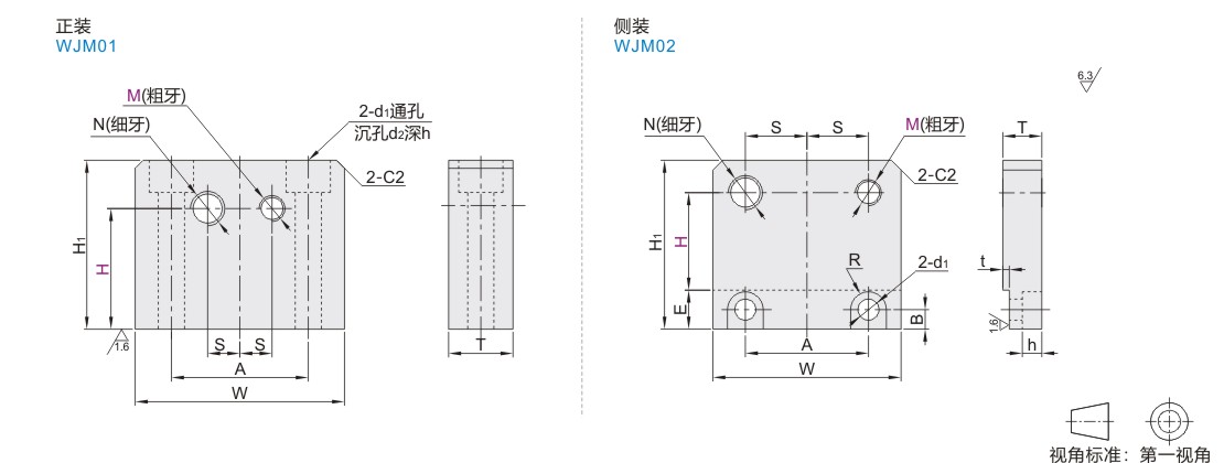 螺孔N适配油压缓冲器,螺孔M适配定位螺栓。