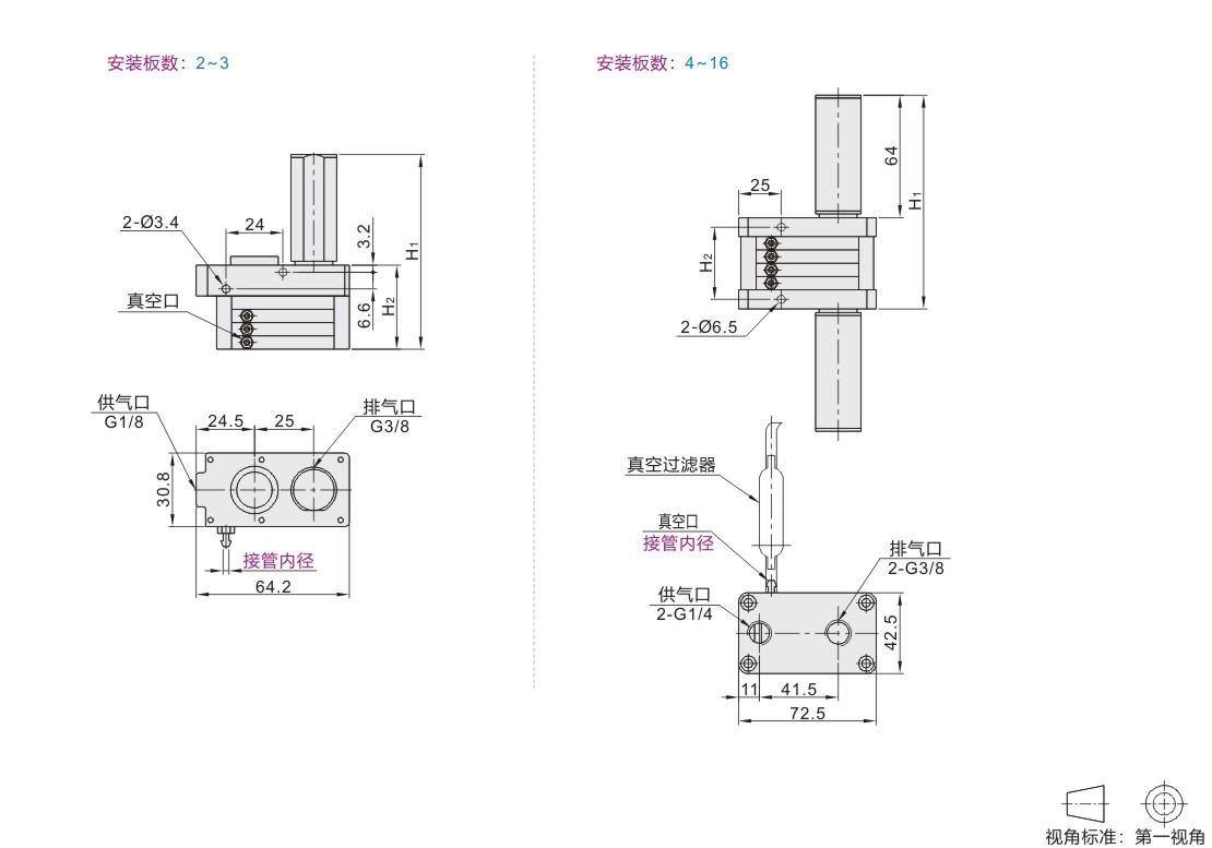 怡合达自营 标准型 真空发生器 方形 组合型 独立回路 外置消音器