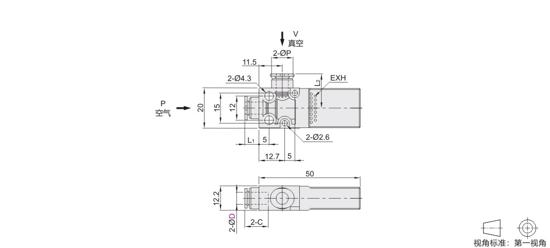 怡合达自营 精密型 真空发生器 方型 标准型 快速接头型 PBT材质 单体
