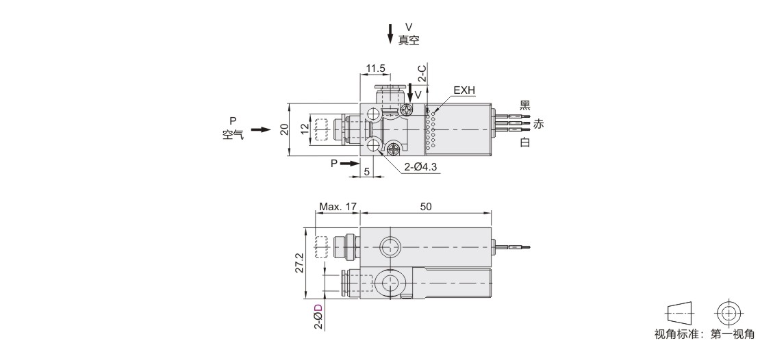 怡合达自营 精密型 真空发生器 方型 带机械真空开关 快速接头型 PBT材质 单体