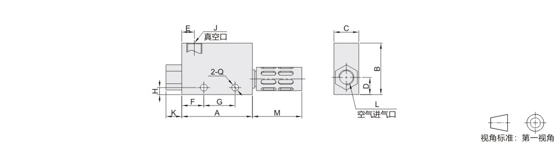 怡合达自营 真空发生器 快速接头型 螺纹连接型 方形 大流量型 外置消音器 金属材质
