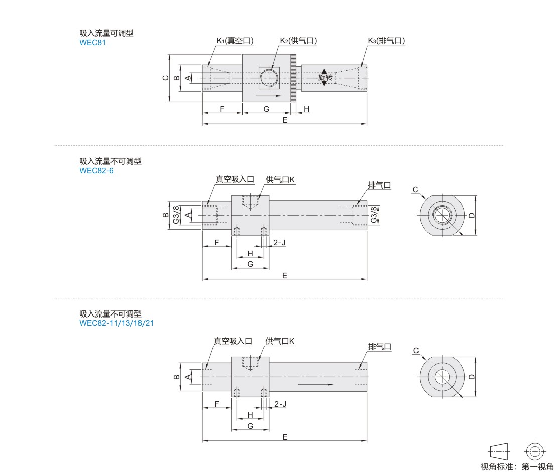 输送型真空发生器 管型 吸入流量可调型/吸入流量不可调型 铝材质