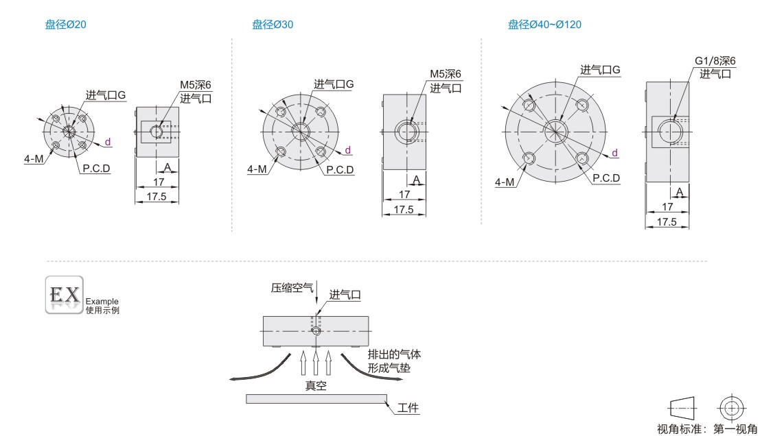 精密型非接触式真空吸盘 内螺纹连接型 铝合金材质