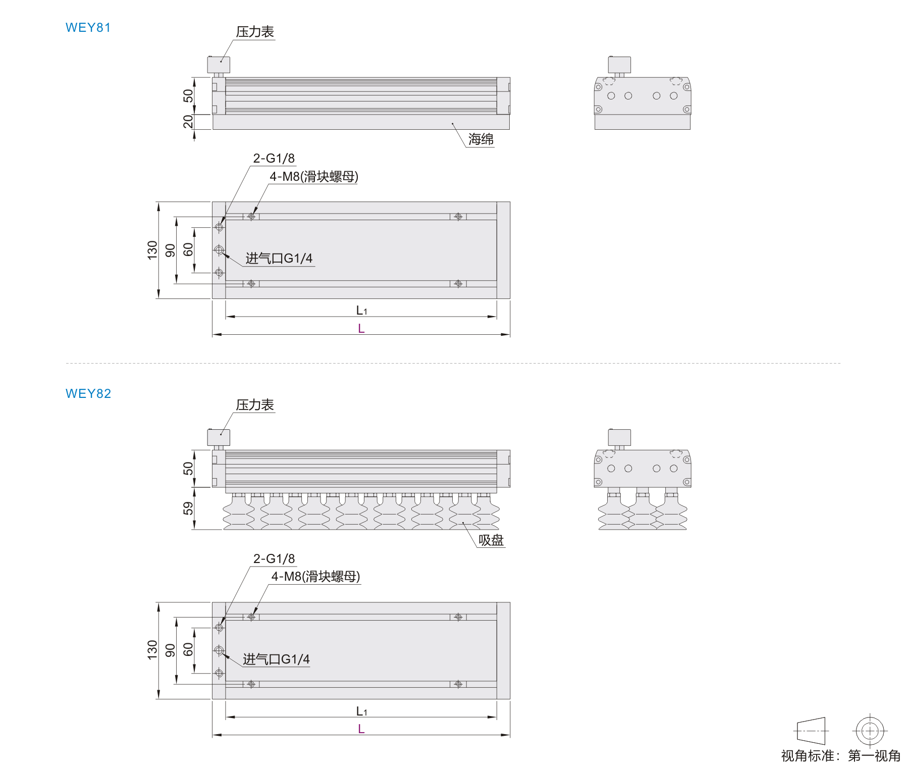 | WEY81 | 真空吸具 | 海绵式 | 海绵 | 内置真空发生器、止回阀、压力表 |