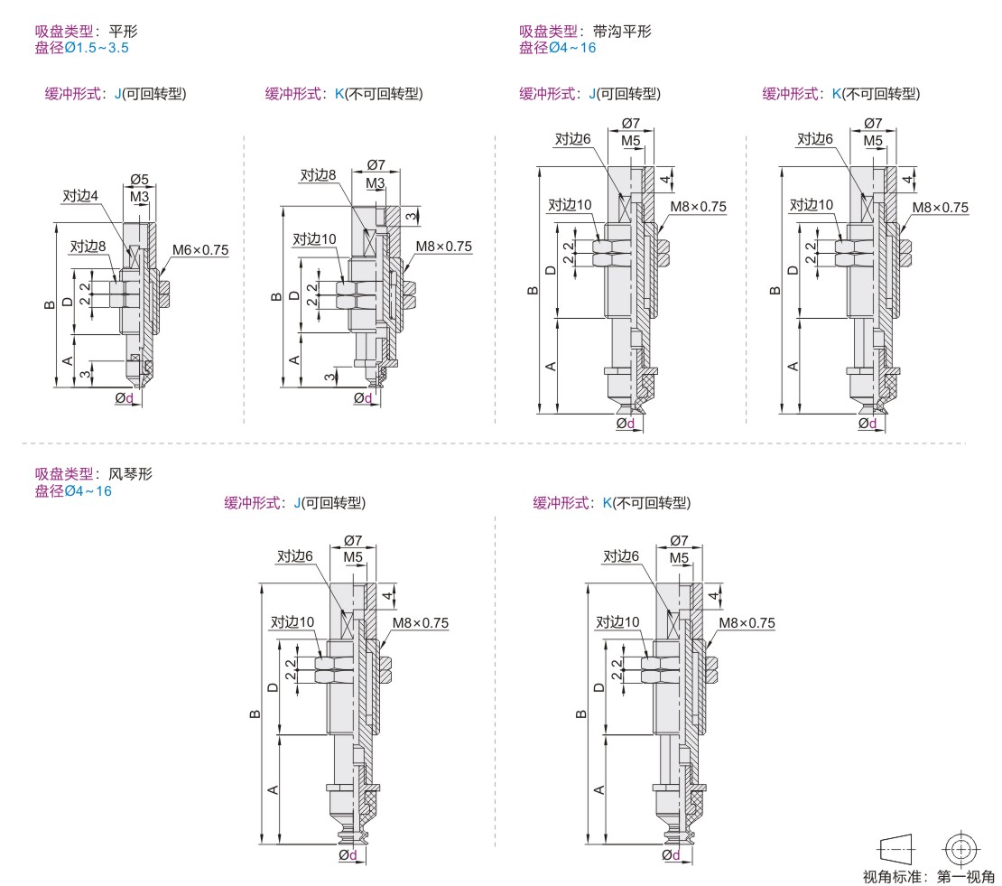 精密型 真空吸盘 组件 本体外螺纹连接 内螺纹接管型 带缓冲型