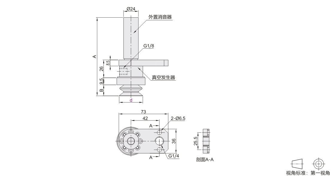标准型 1.5折波纹形真空吸盘 组件 带真空发生器 内螺纹接管型