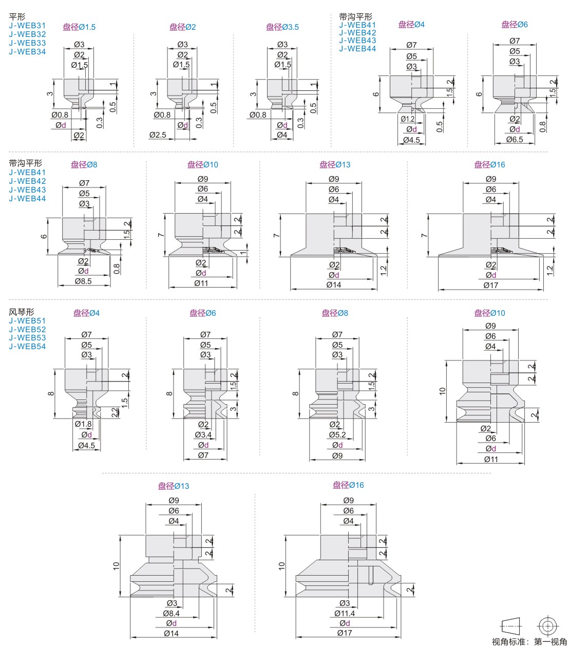 精密型 真空吸盘 平形 带沟平形 风琴形