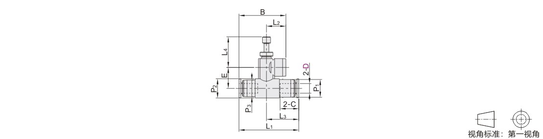 | 型号 | B | L1 | L2 | L3 | L4 | P1 | P2 | P3 | C | E | 有效断面积(mm2) | 重量 (g) |