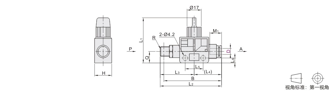 三通阀型排气口为配管一侧。