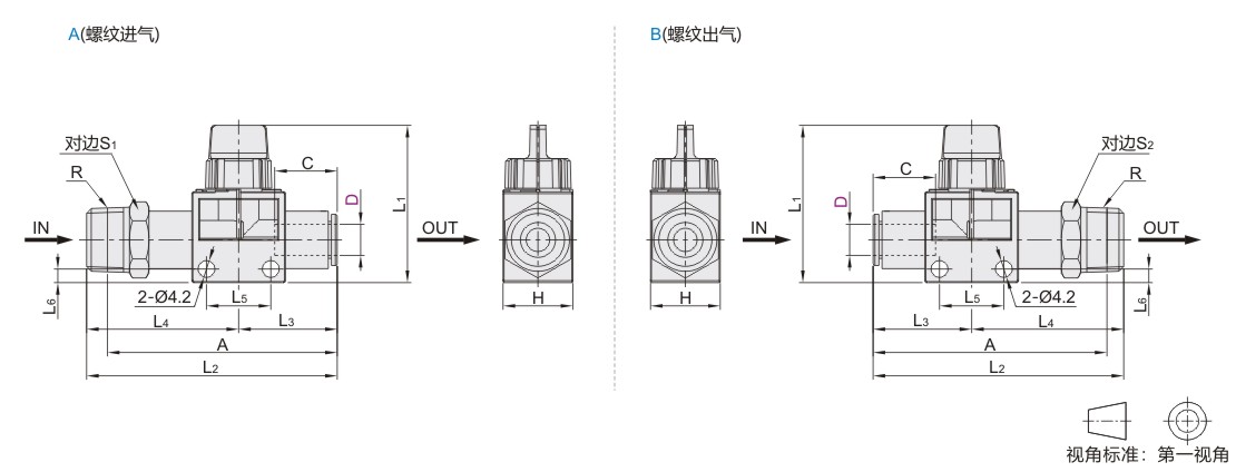 怡合达自营 经济型 手动阀 S款 单边螺纹型 快插型