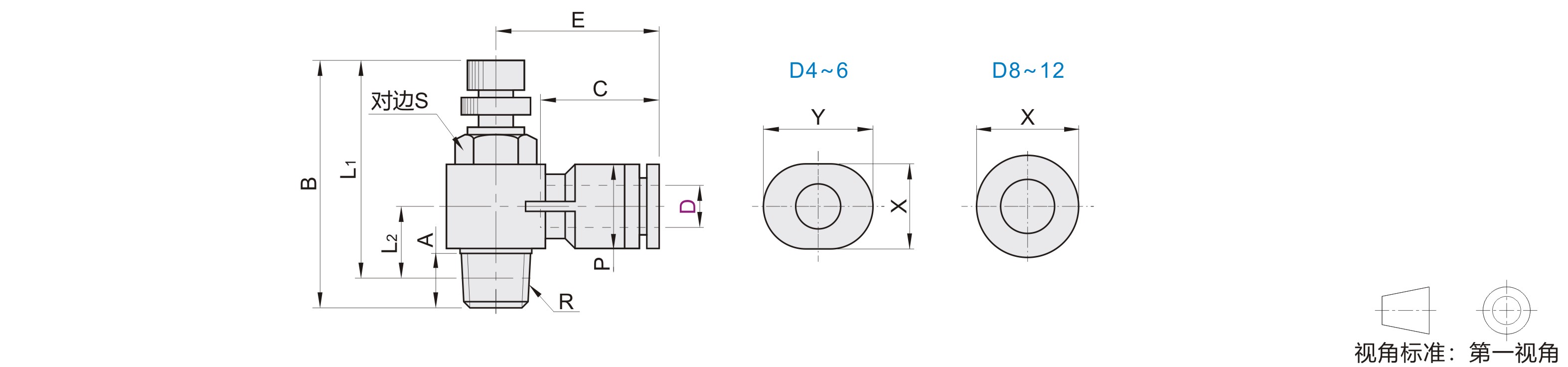 怡合达自营 精密型 调速阀 弯接头 标准型 SUS303等效防腐型 外螺纹 出口节流型 进口节流型 快插型