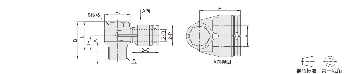 怡合达自营 精密型 快插接头 双通外六角弯接头 外螺纹 快插型