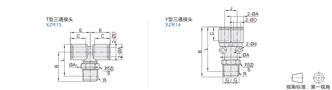 | XZR14 | Y型三通接头 | |||||