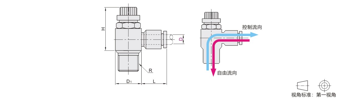 怡合达自营 经济型 调速阀 全黄铜T型 限出型调节接头 快插型 黄铜材质 镀镍