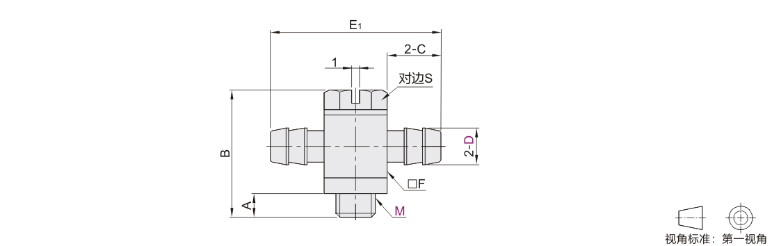 怡合达自营 精密型 真空接头 外六角十字接头 外螺纹 宝塔型 黄铜材质 镀镍