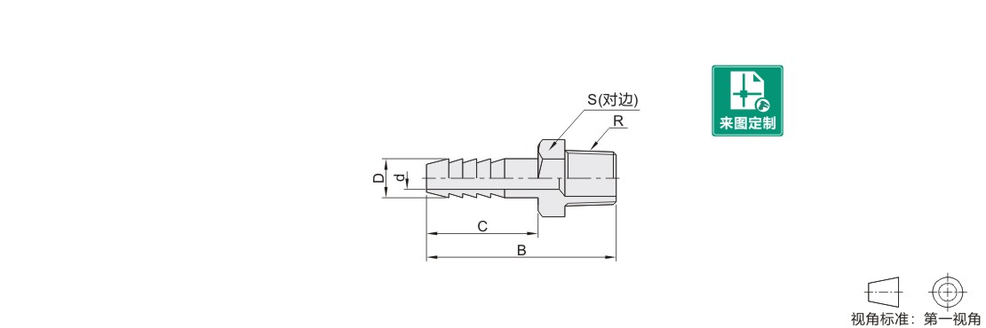 怡合达自营 经济型 全铁接头 直接头 外螺纹 宝塔型 铁材质 镀蓝锌