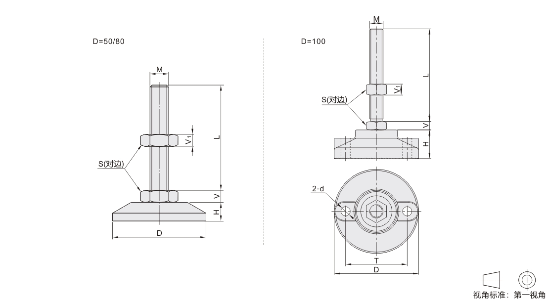 经济型防震脚杯 中载型 固定调节型 尼龙底座型