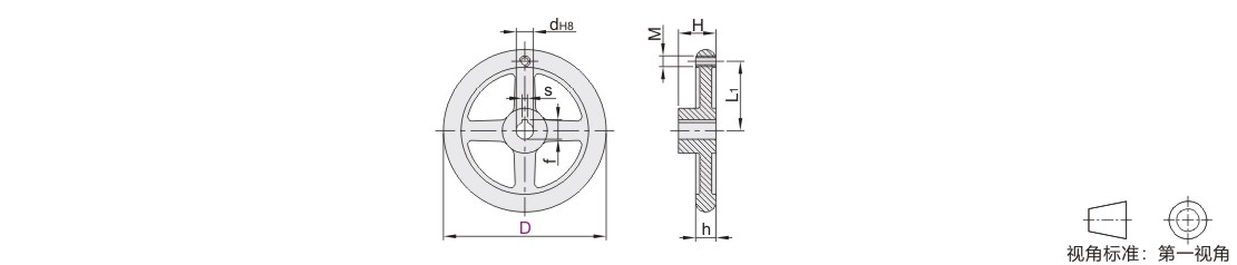 四幅圆轮缘手轮 经济型 无手柄型 黑色 安装方式键槽孔型