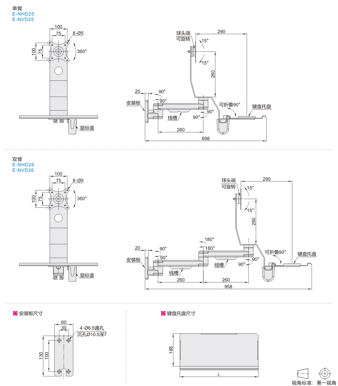 经济型重载显示器支架 通用键盘 壁挂式安装