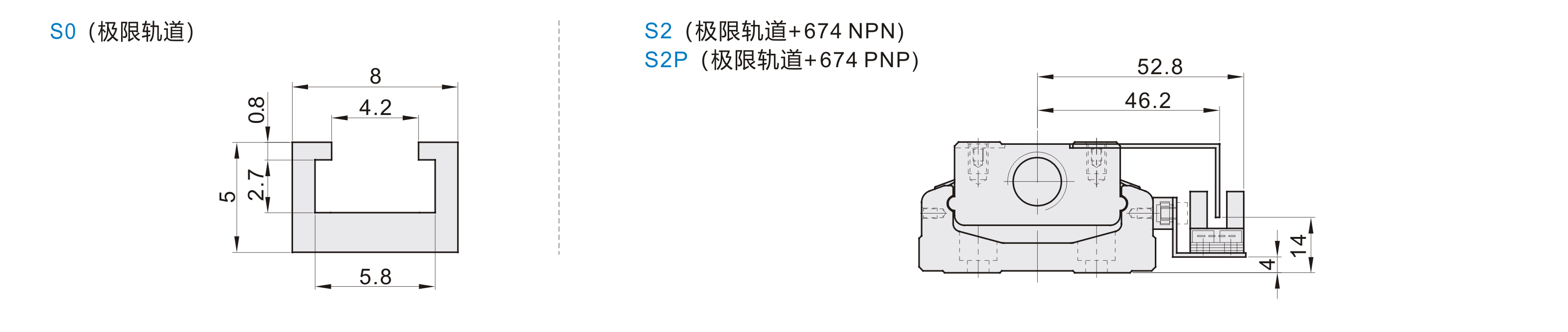 | KK60BD | S2(极限轨道+674 NPN) | 46.2 | 52.8 | 4 | 14 |