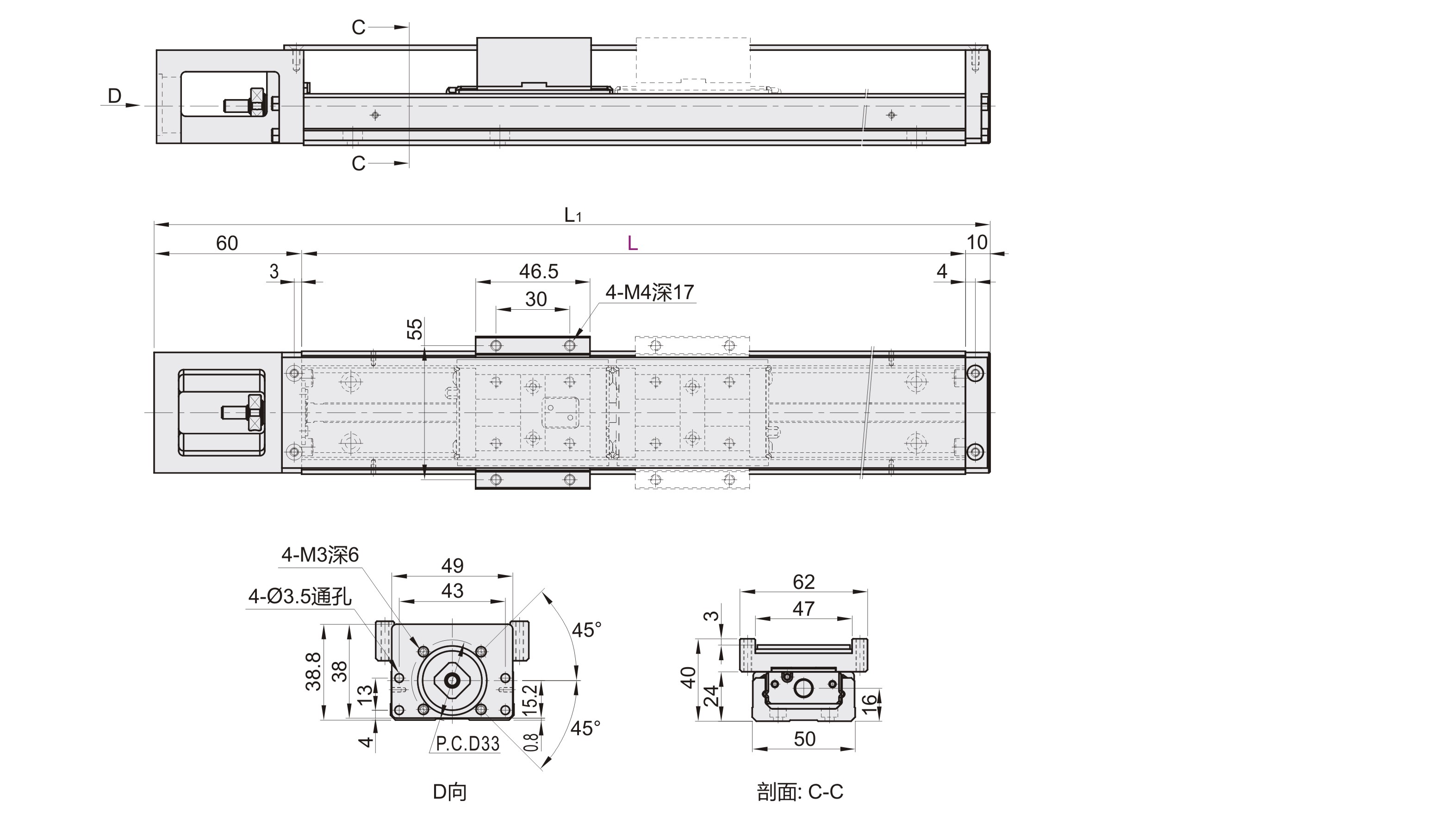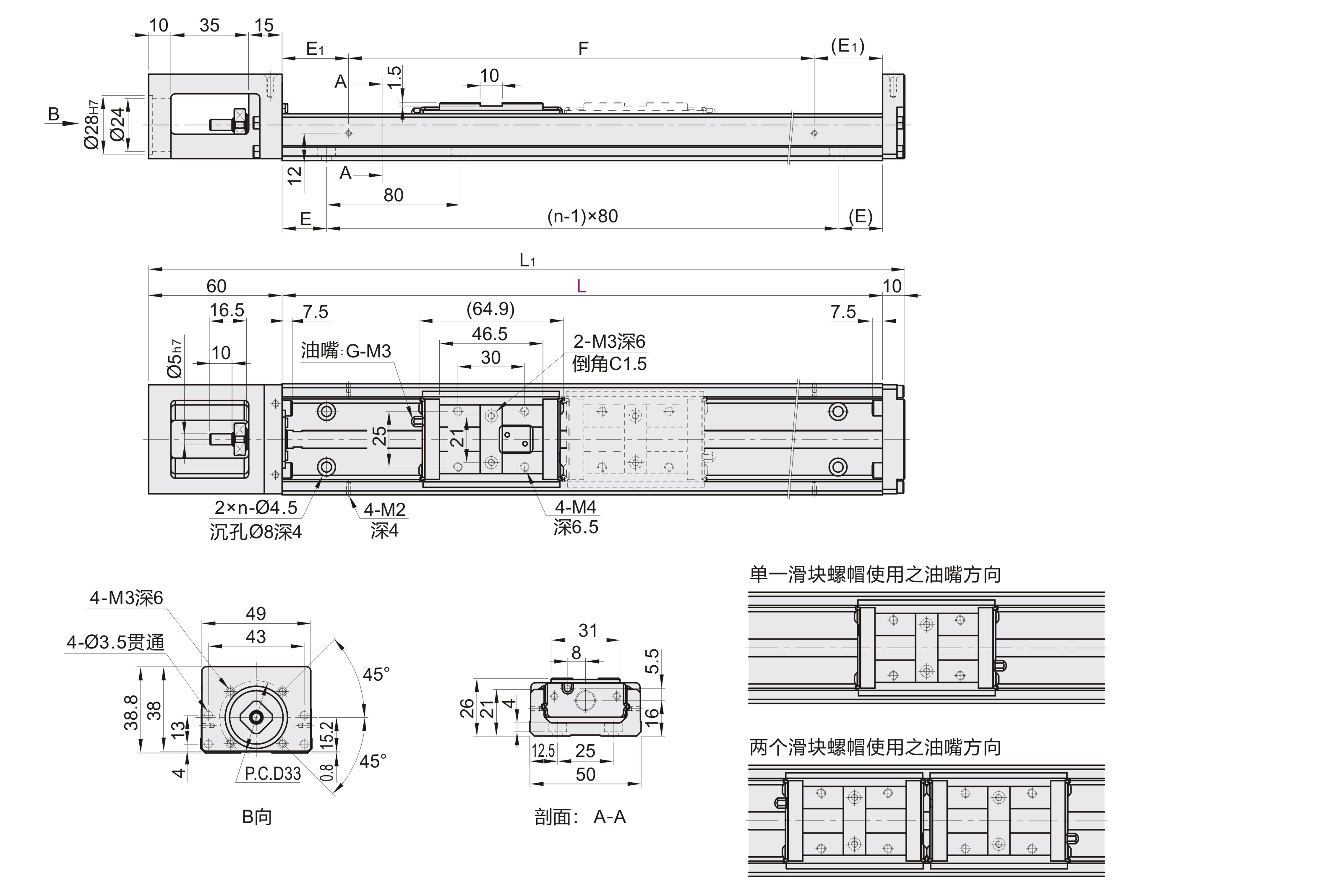| 型号 | 滑块 | 轨道长度 L |