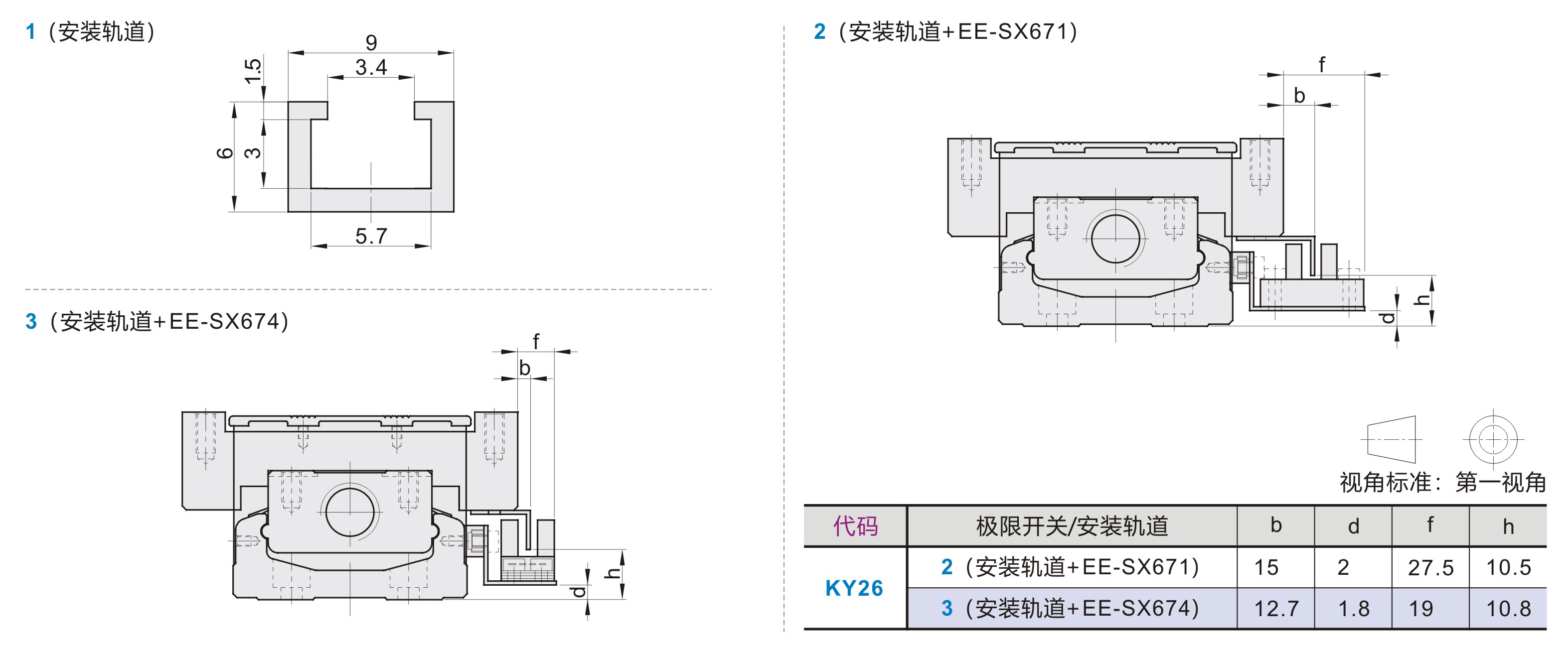 1(含护盖) | 1(只有极限轨道) 2(安装轨道+EE-SX671) 3(安装轨道+EE-SX674) |