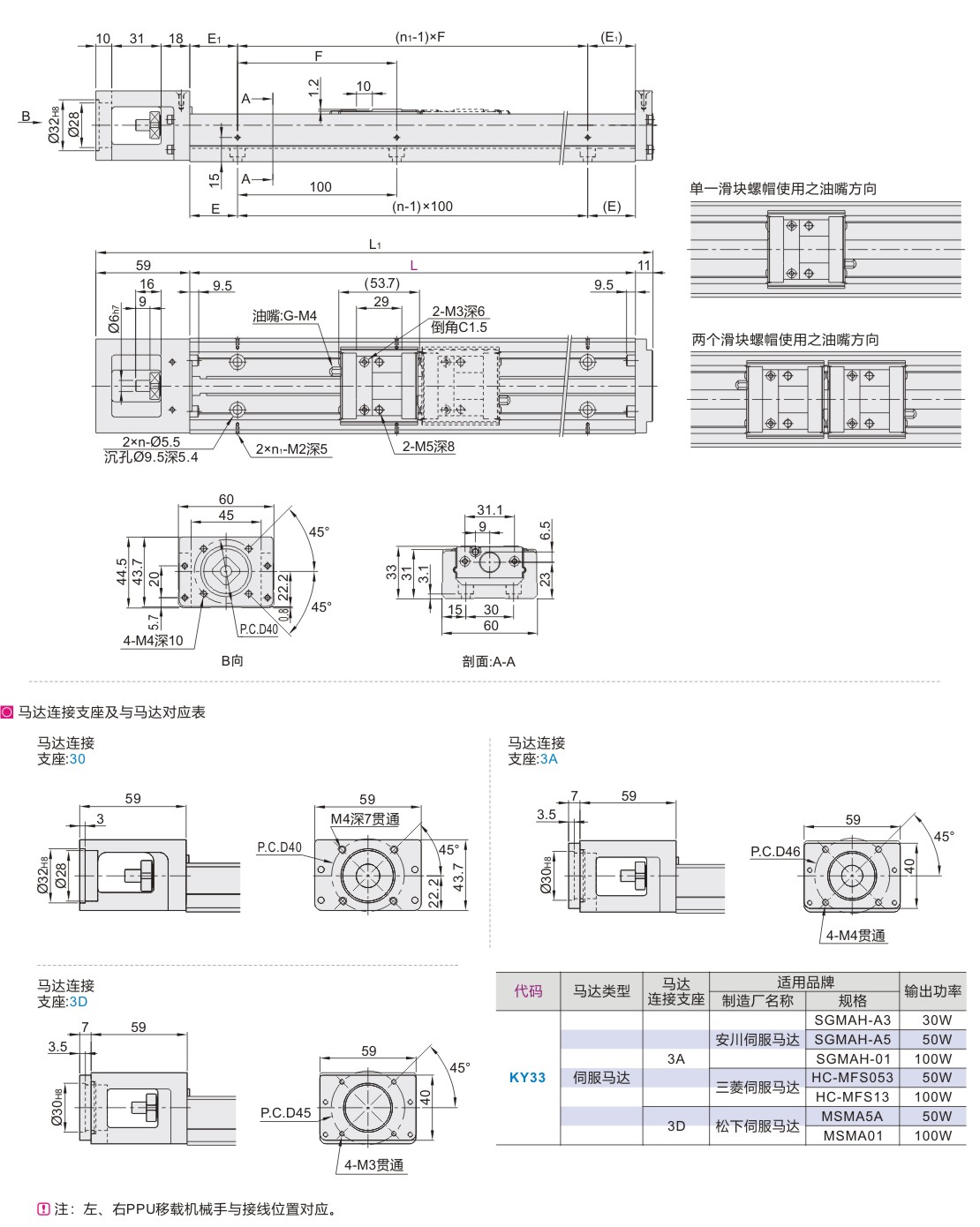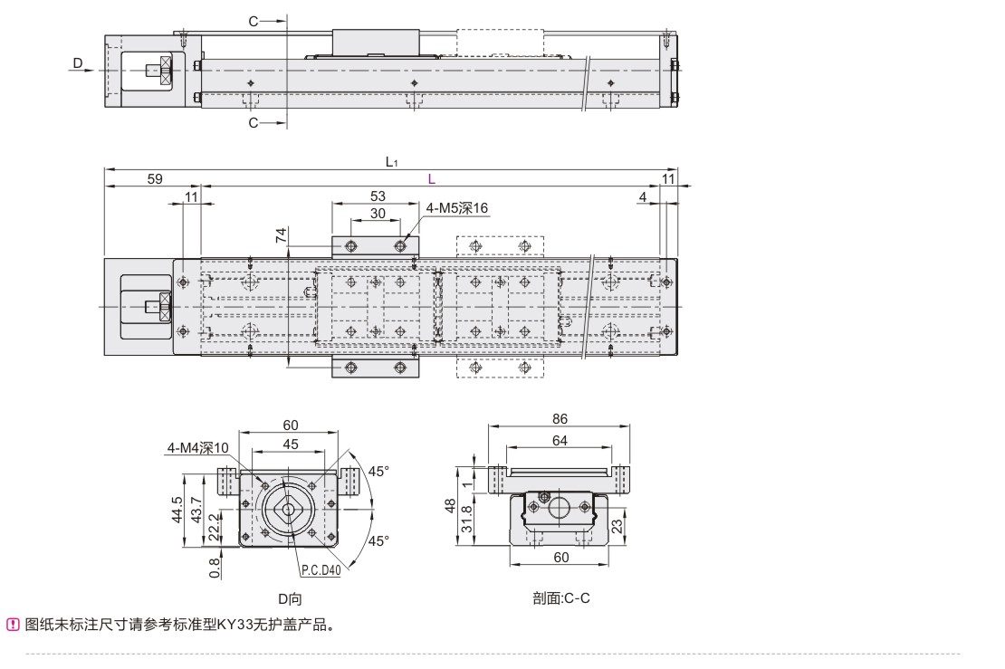 银泰 KY模组 KY33 滚珠丝杆传动 黑色 导程5/10 马达直连