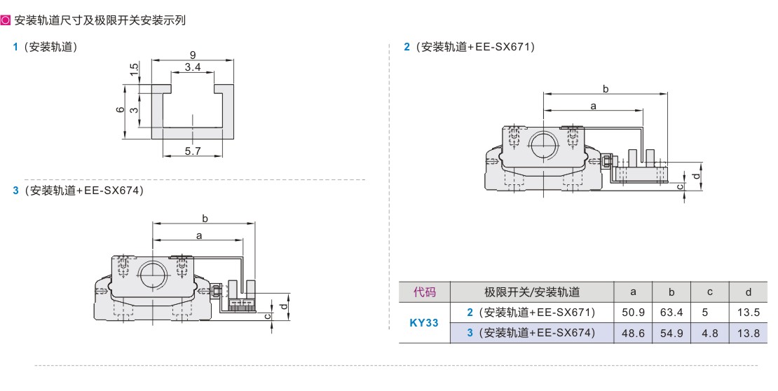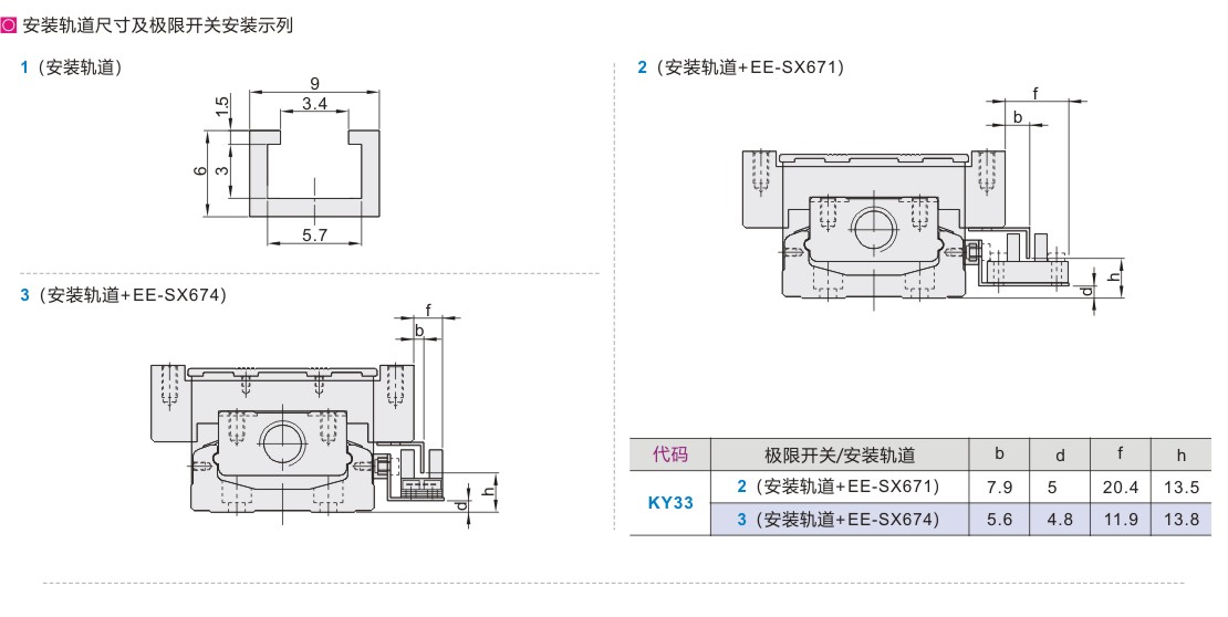 1(只有极限轨道) 2(安装轨道+EE-SX671) 3(安装轨道+EE-SX674) |