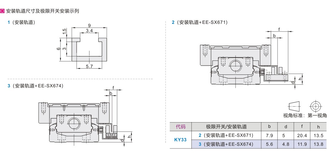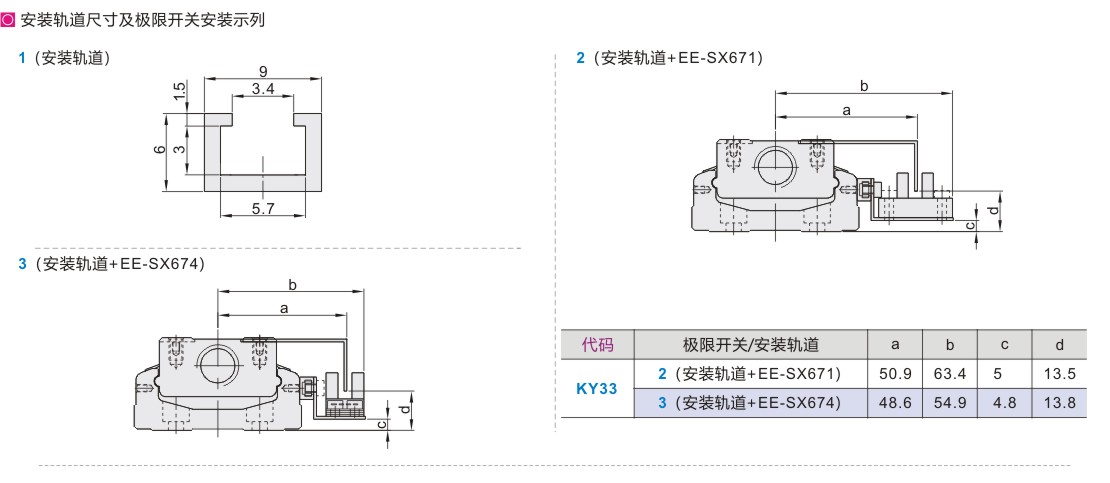极限开关 安装轨道选择 |