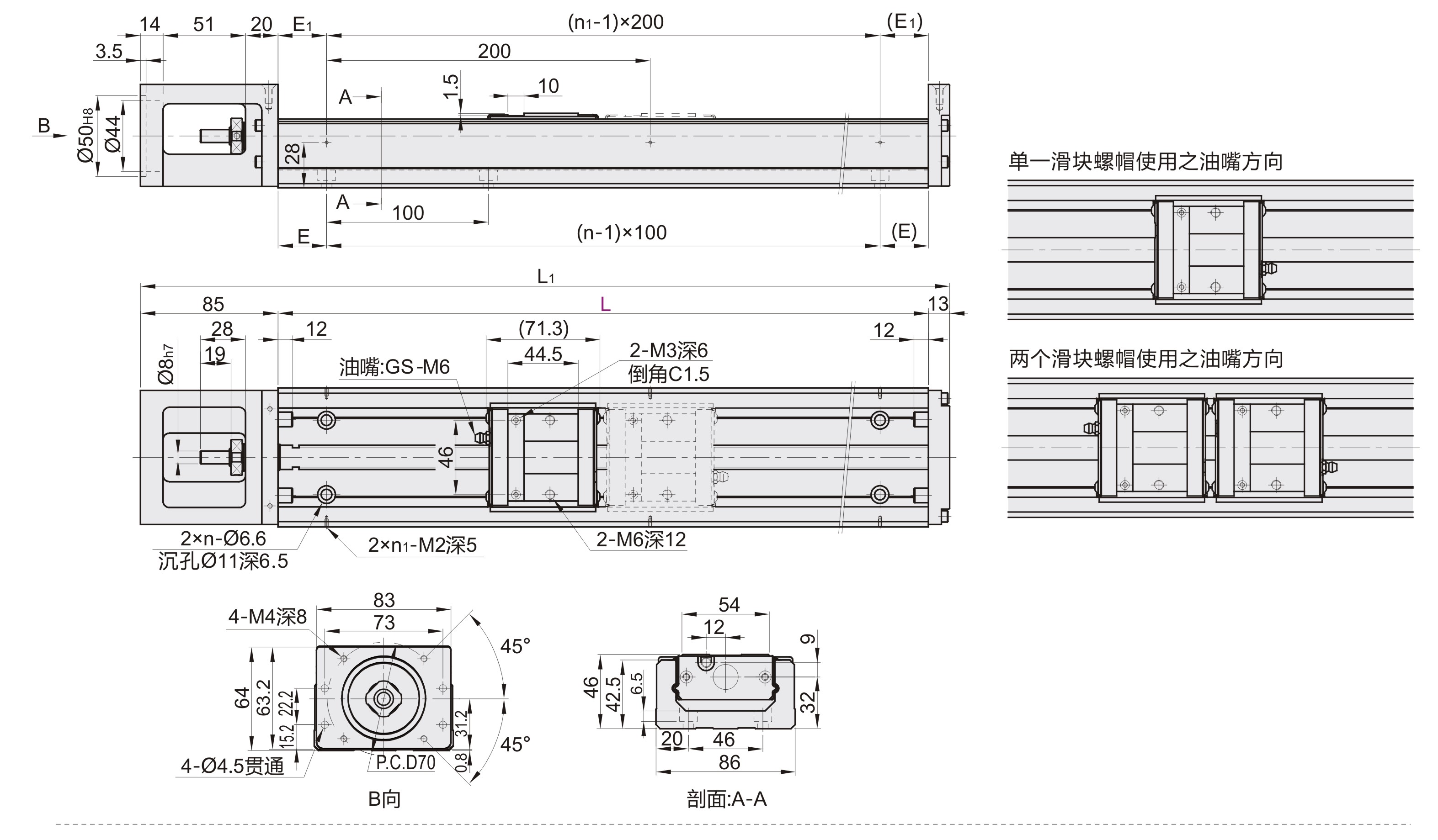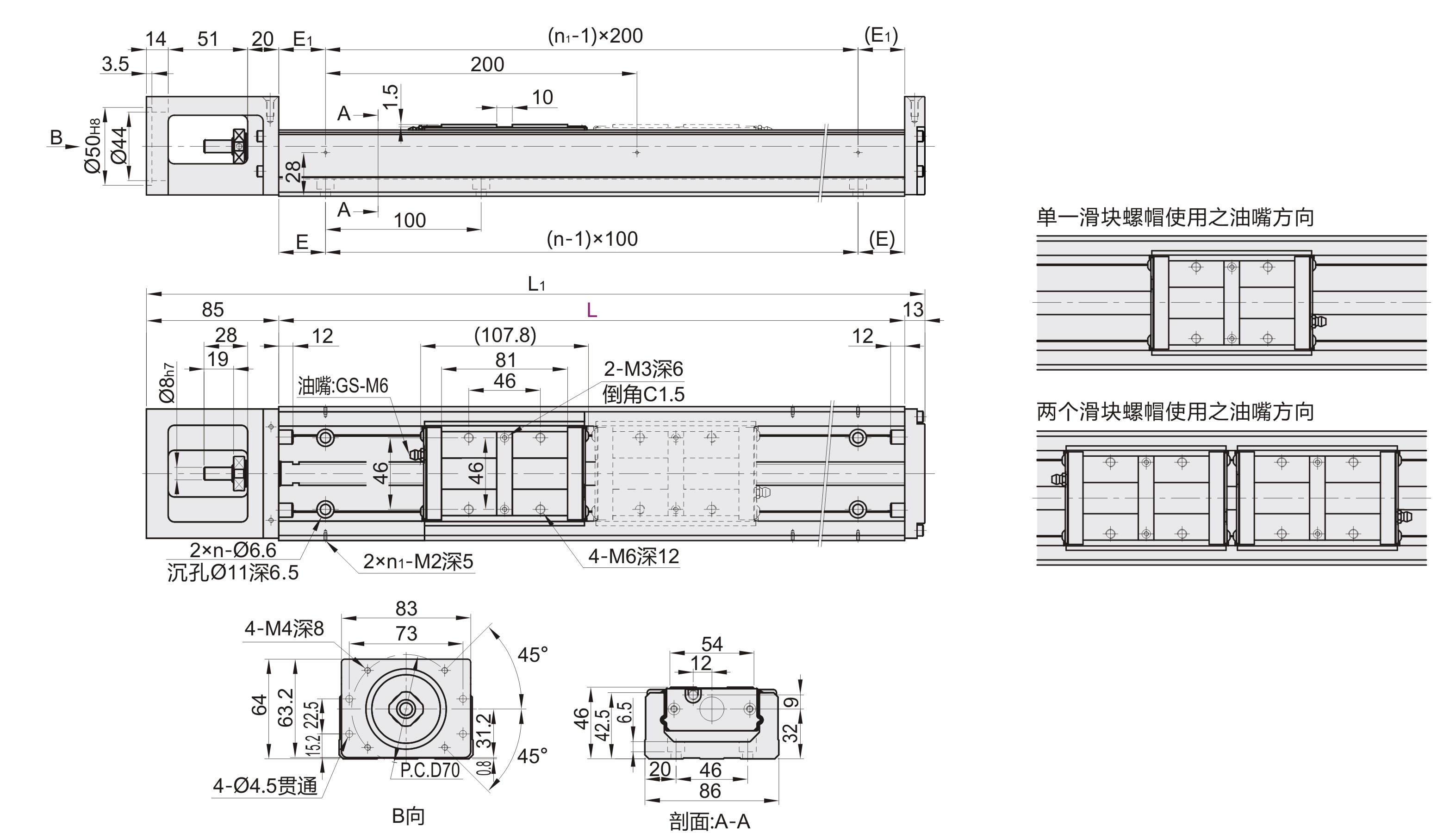 银泰 KY单轴驱动器 46系列 短型 无护盖 含铝护盖 伺服马达型 导程10/20 染黑处理