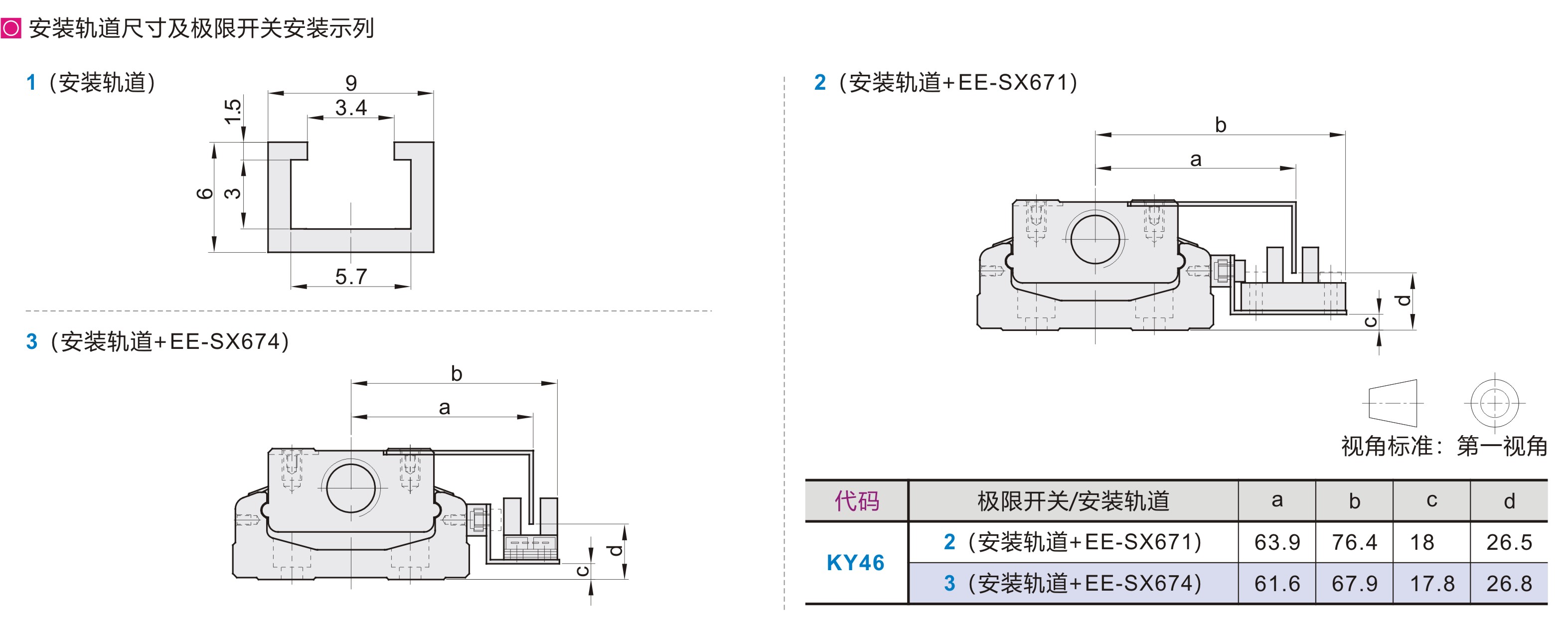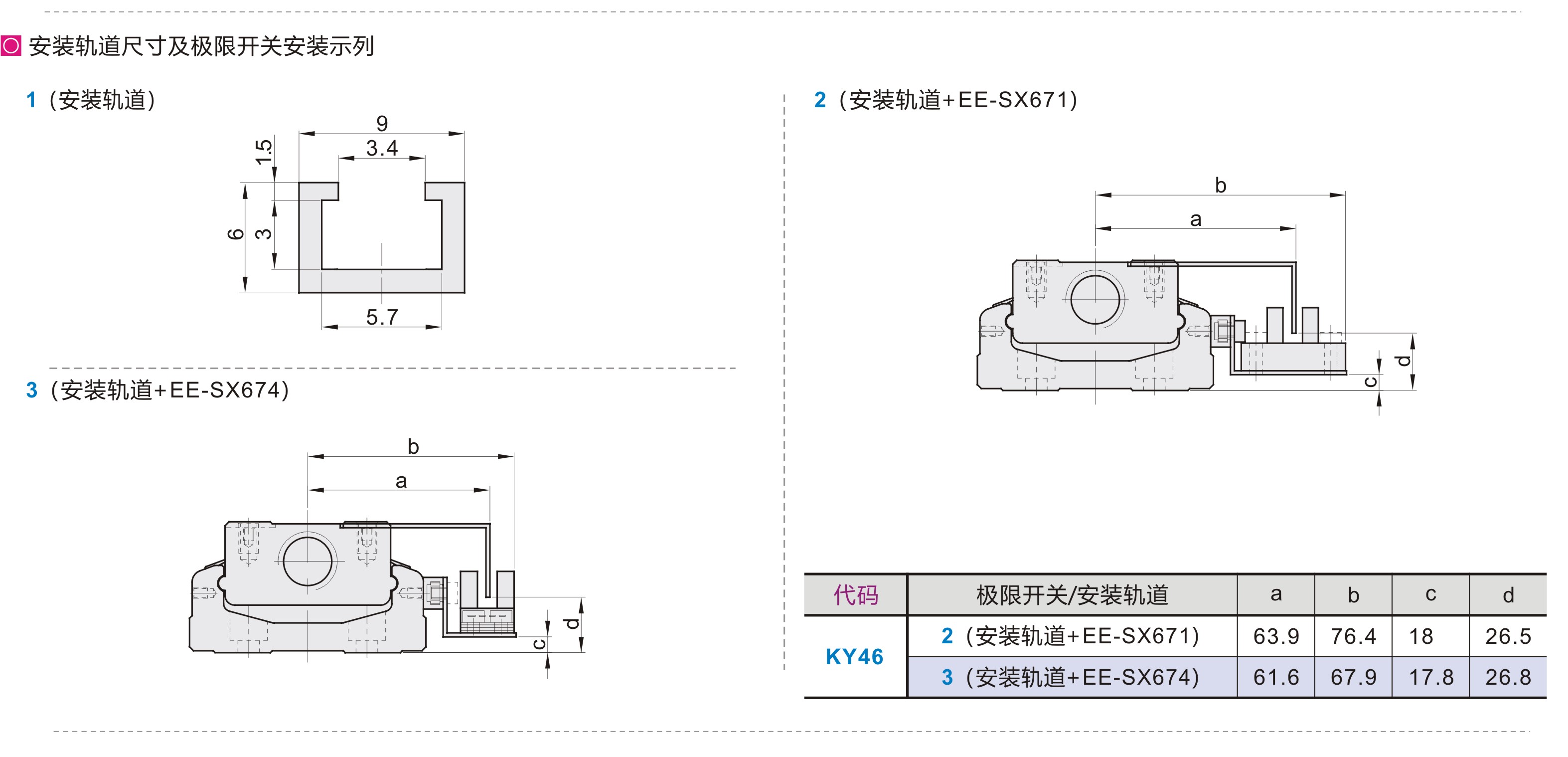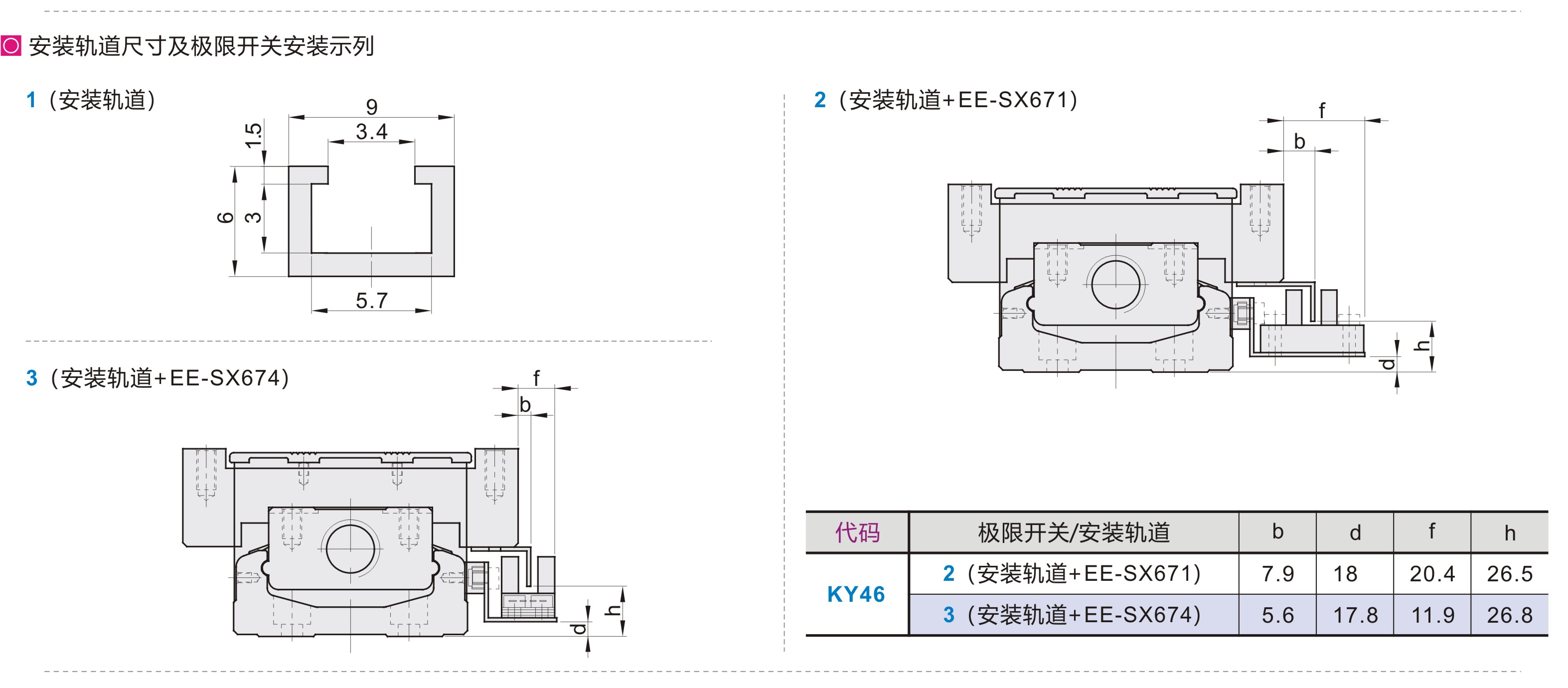 1(只有极限轨道) 2(安装轨道+EE-SX671) 3(安装轨道+EE-SX674) |