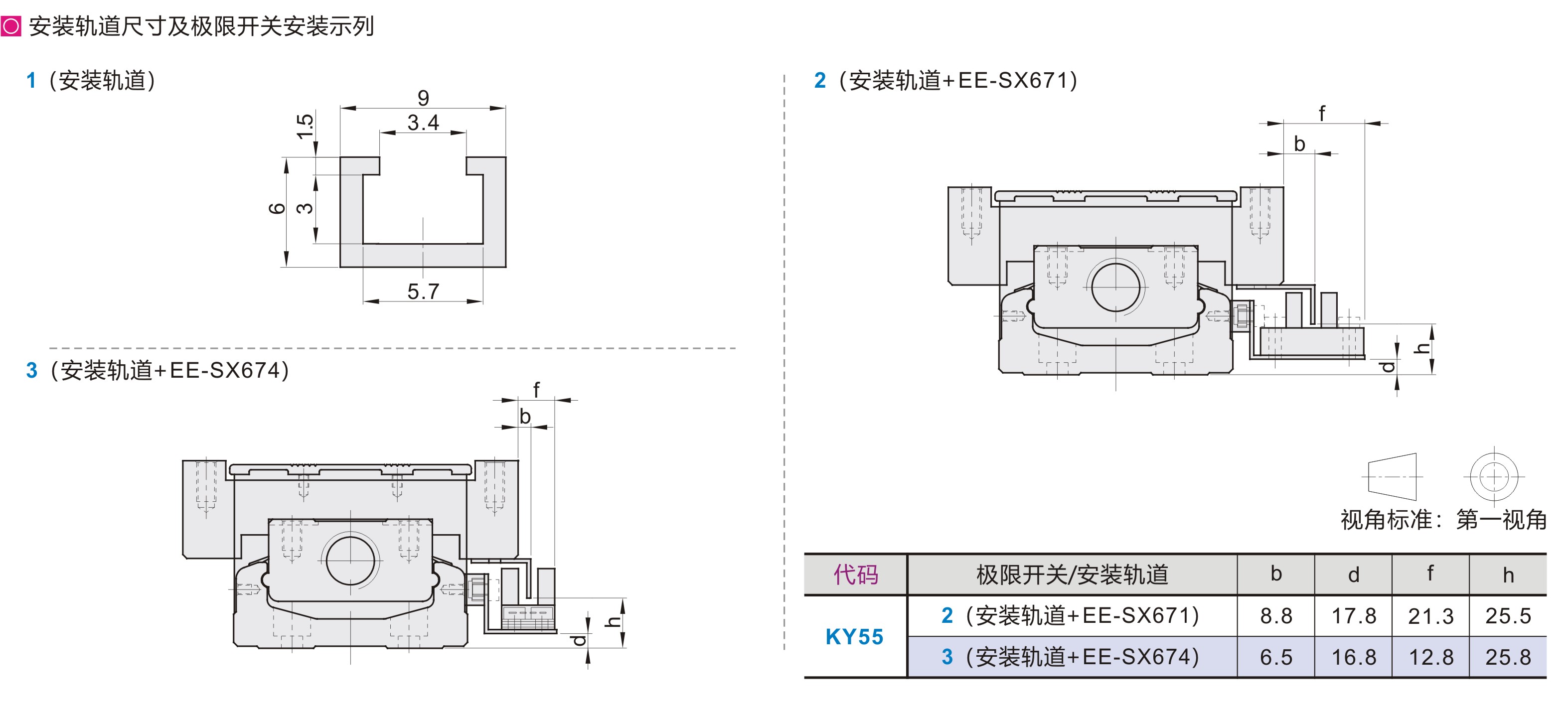 1(只有极限轨道) 2(安装轨道+EE-SX671) 3(安装轨道+EE-SX674) |