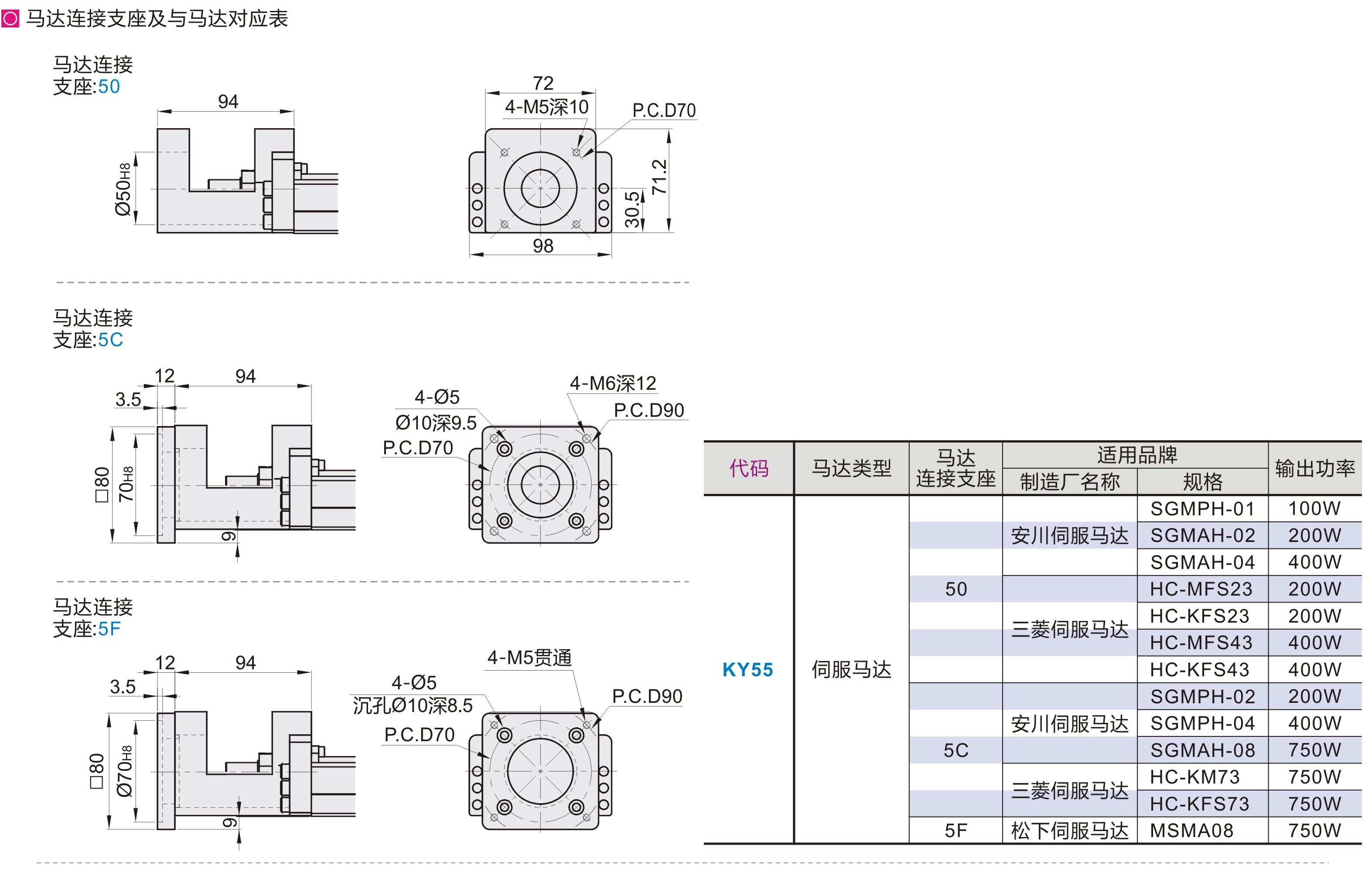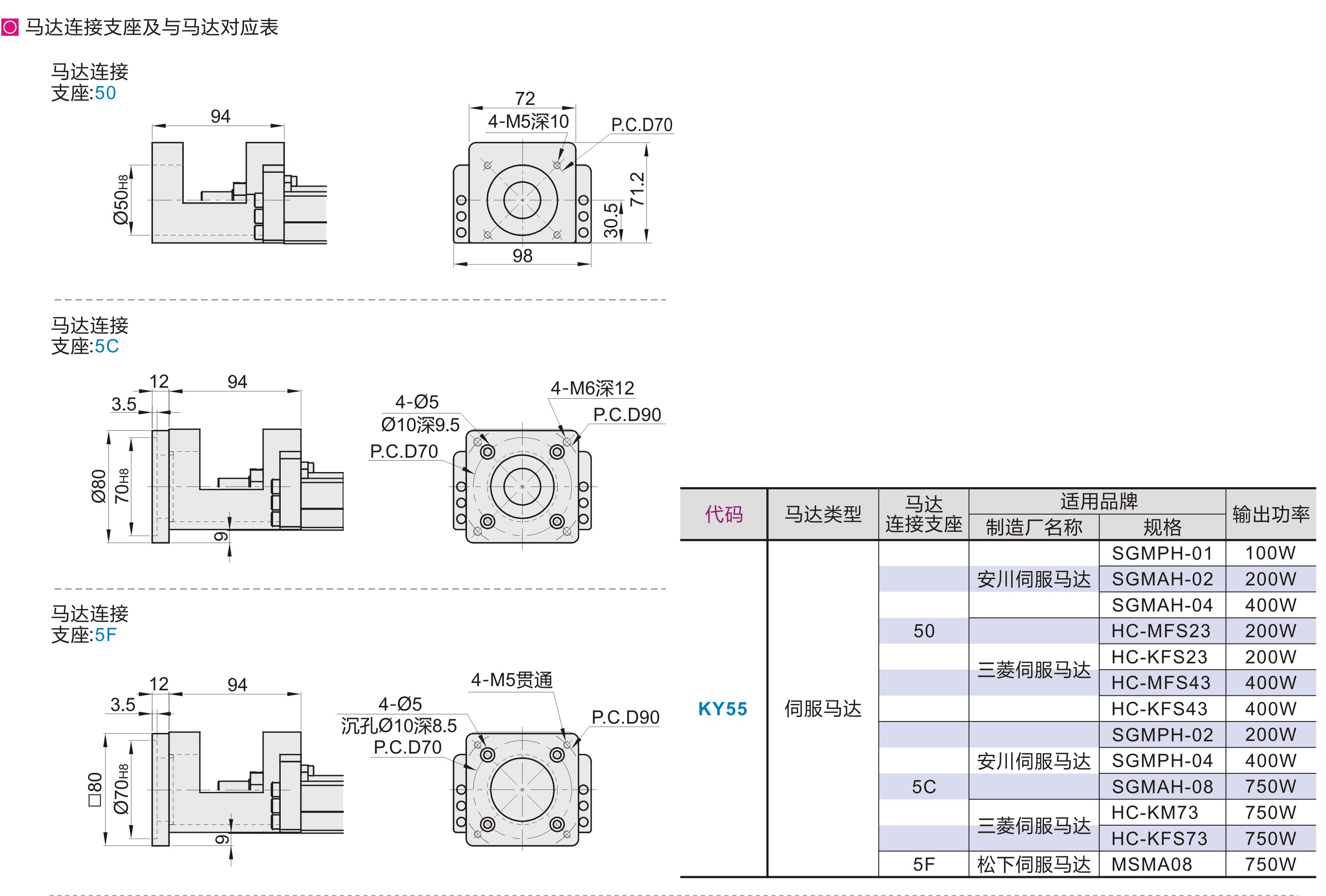| KY55 | 伺服马达型 | 20 | SCM | 铬钼合金 |