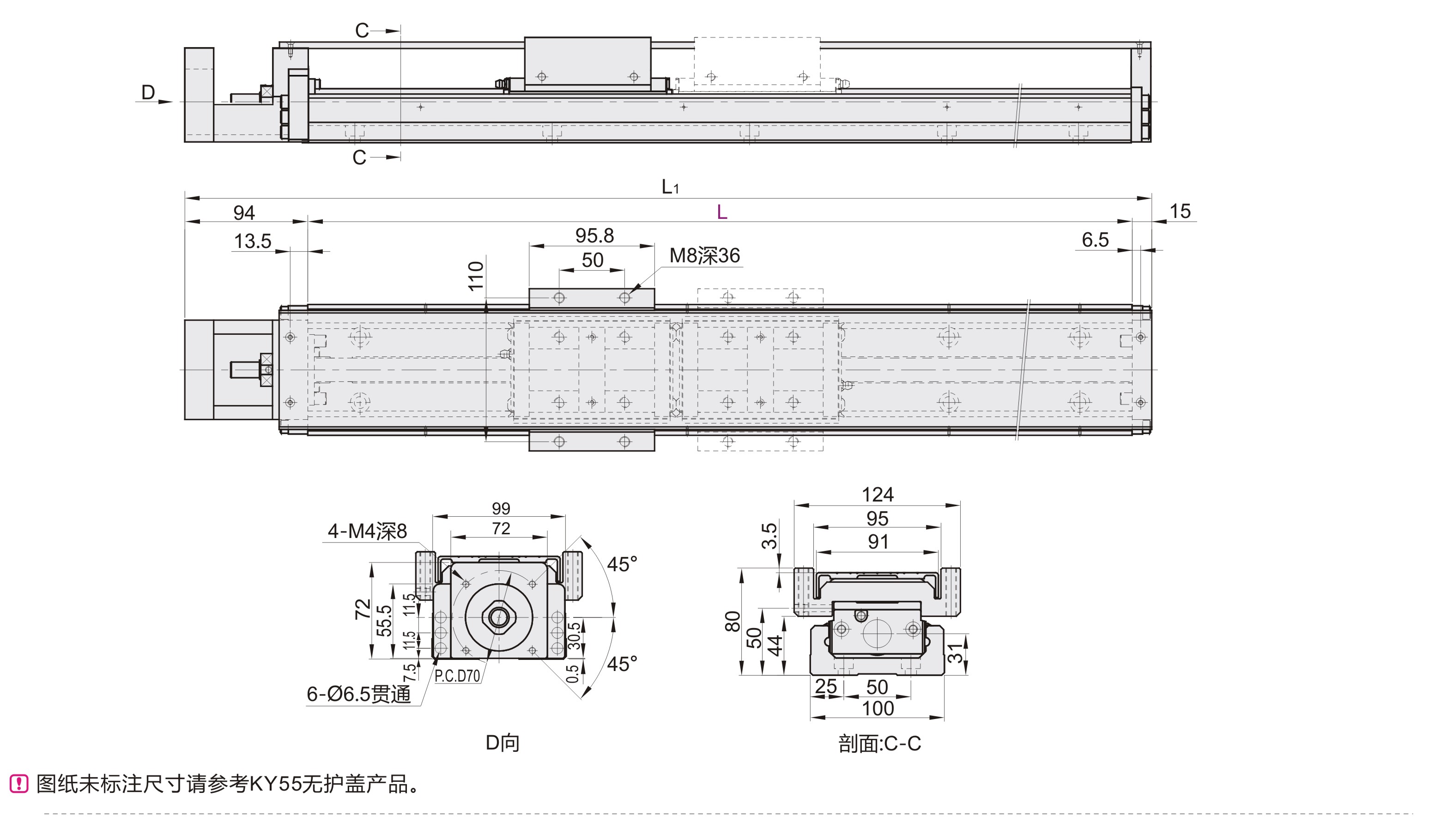 银泰 KY单轴驱动器 55系列 无护盖 含铝护盖 伺服马达型 导程20 染黑处理