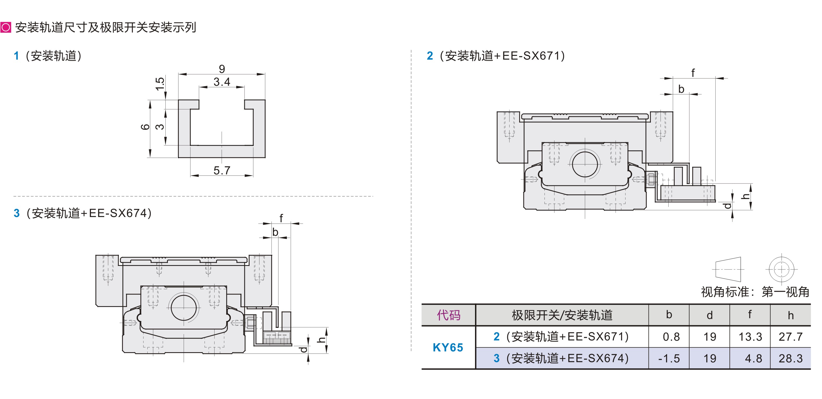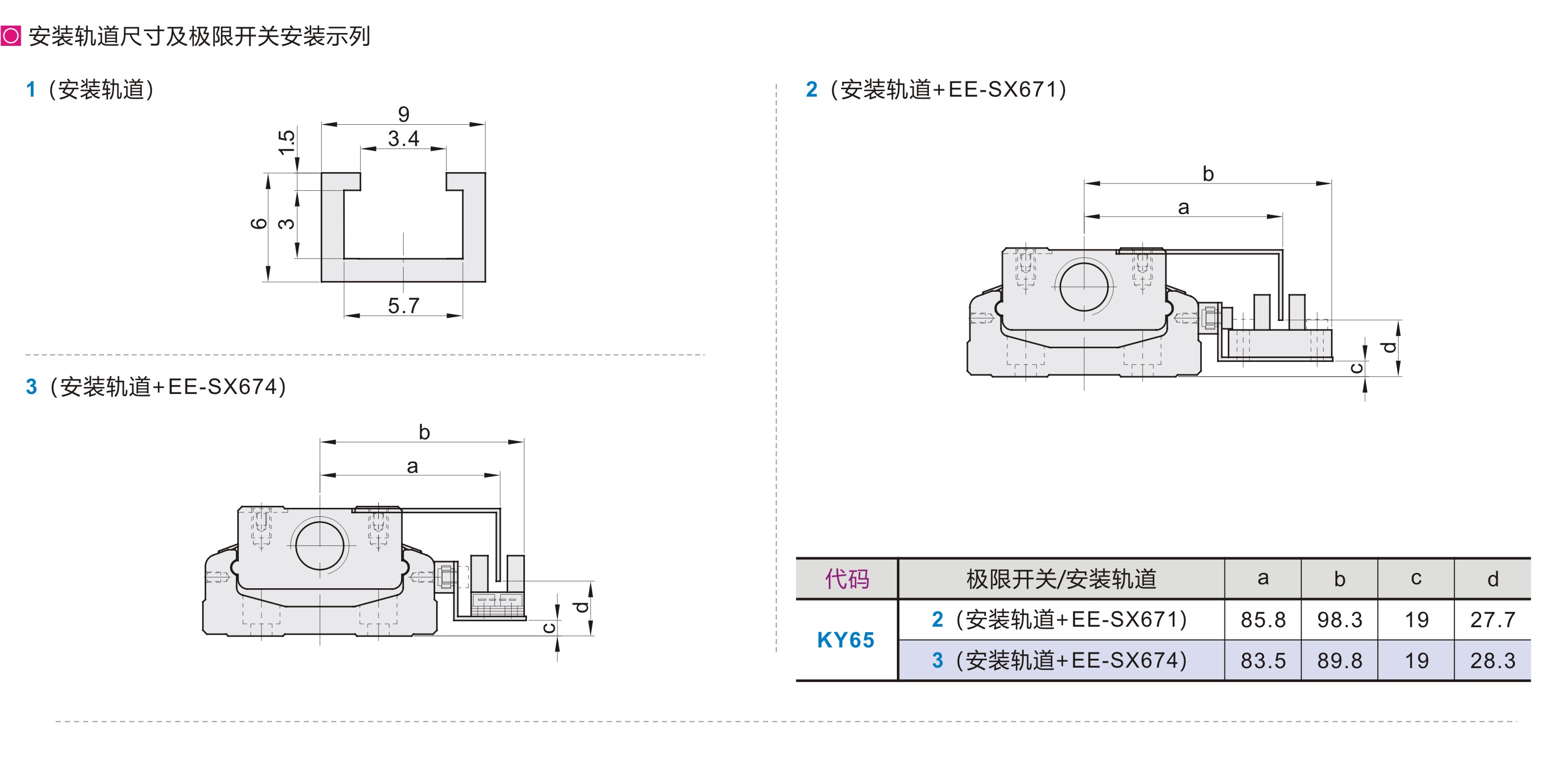 1(只有极限轨道) 2(安装轨道+EE-SX671) 3(安装轨道+EE-SX674) |