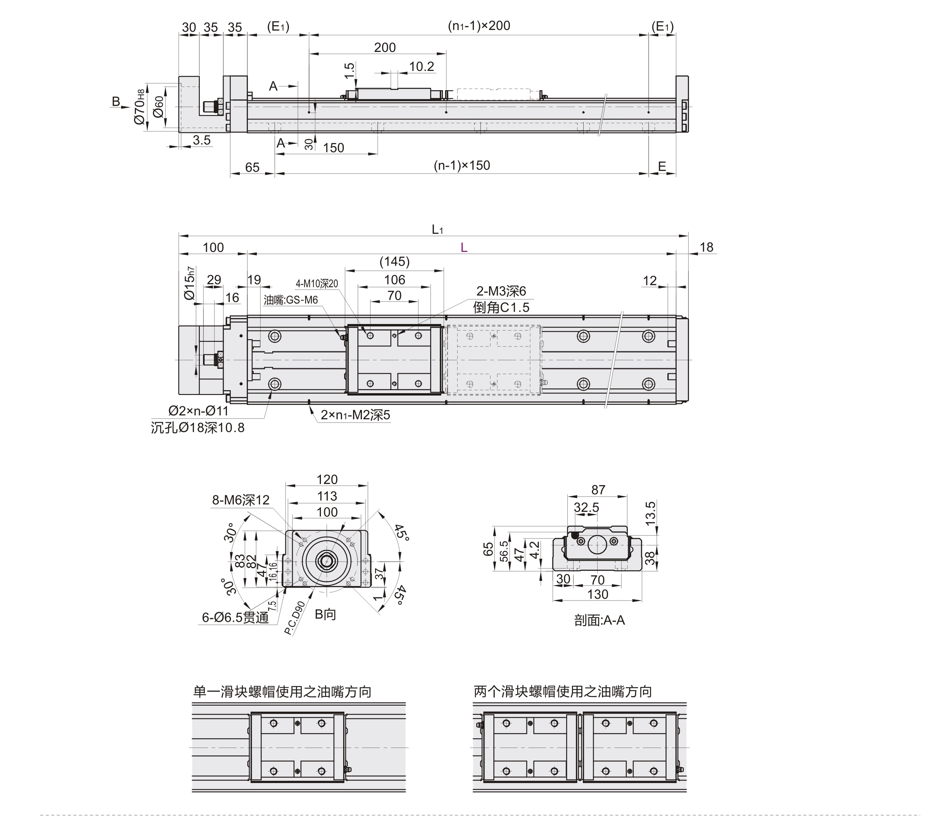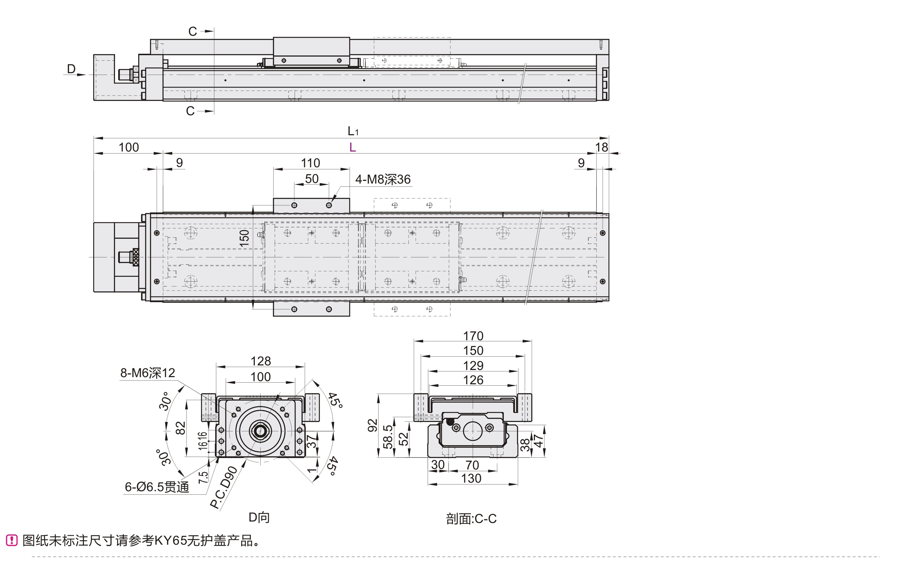 银泰 KY单轴驱动器 65系列 无护盖 含铝护盖 伺服马达型 导程25 染黑处理