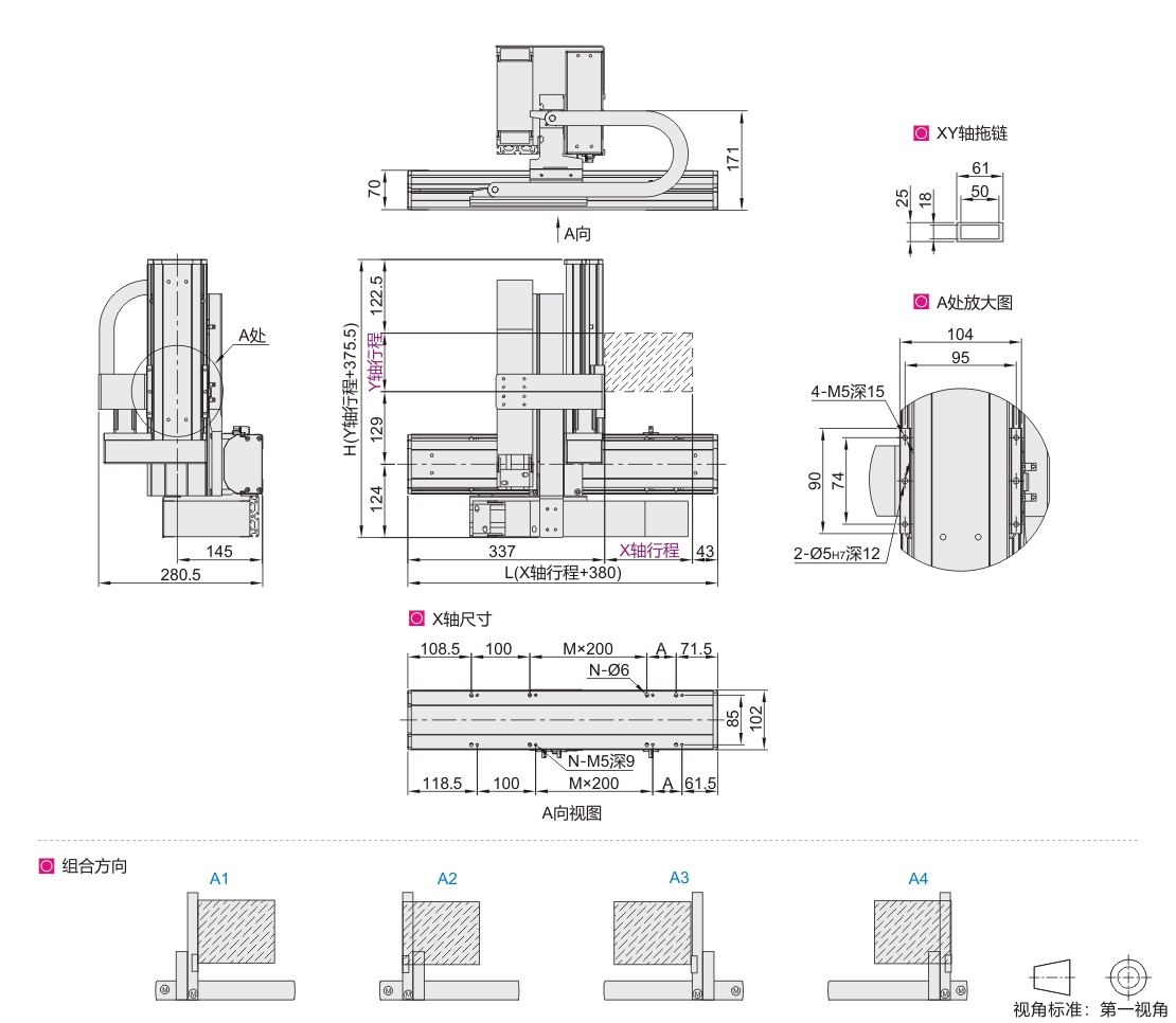 多轴模组 YS440-A 滚珠丝杆传动 悬臂型 铝合金本色