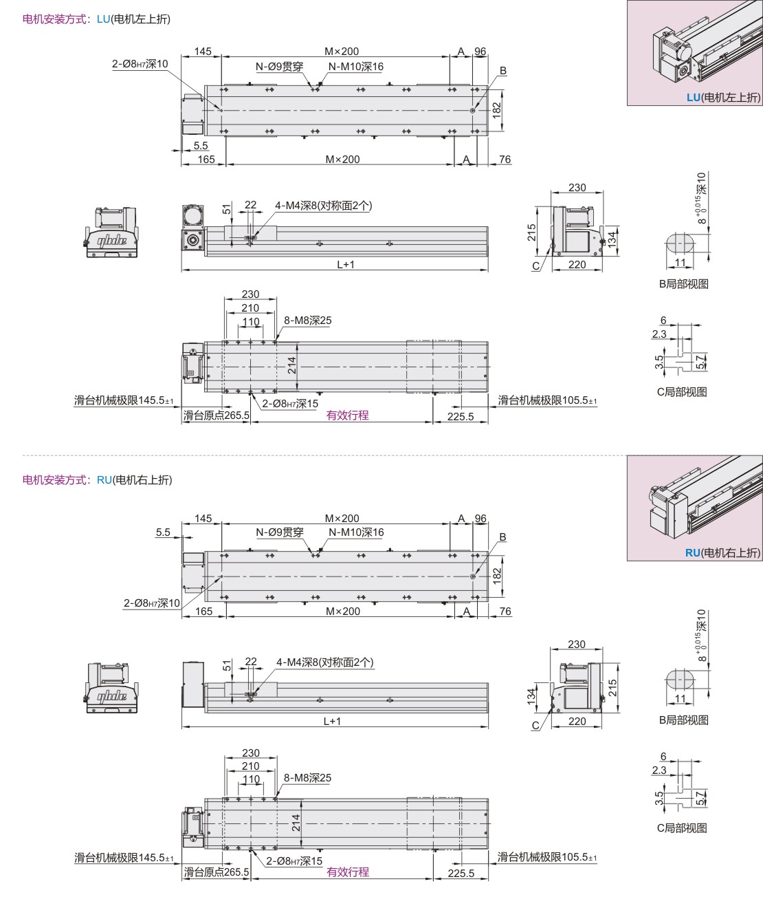| LU (电机左上折) RU (电机右上折) |