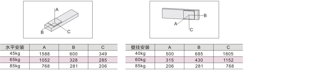 | 最大负载(kg) | 水平使用 | 85 | ||