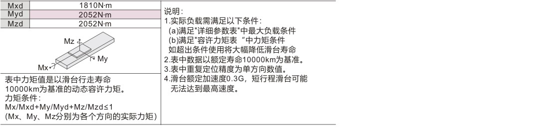 容许负载力矩表(单位: mm)